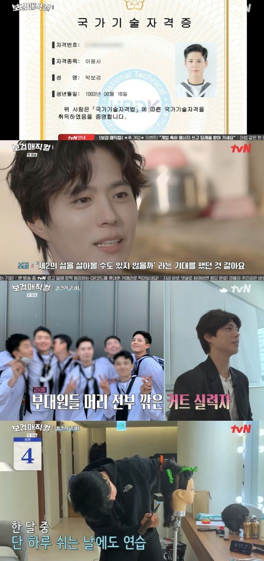 앞서 박보검은 군대에서 이용사 자격증을 따 화제를 모은 바 있다. 그는 “어떻게 많이 알려졌더라. 헤어 선생님이 많이 만져주다보니까 보는 눈도 생기고 ‘어? 이렇게 하면 더 예쁘겠다’ 하면서 많이 배웠다”라고 이야기했다.