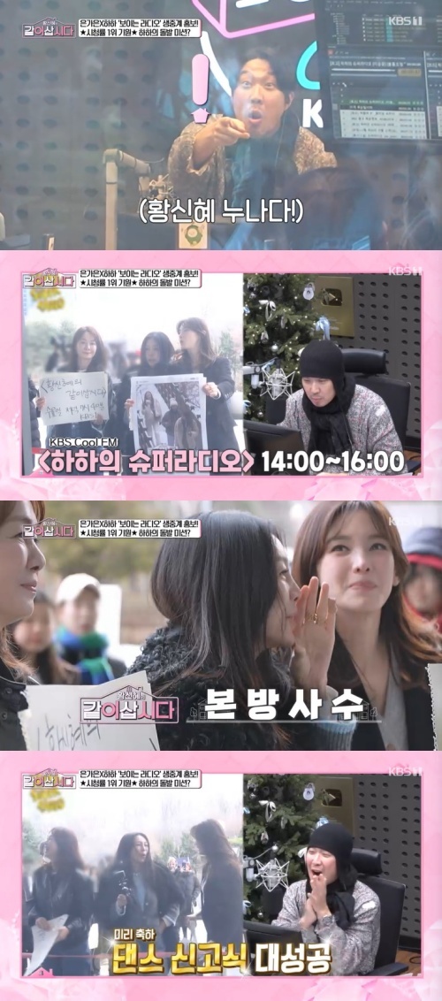 이들은 라디오국에도 방문했다. 이때 가수 하하가 보이는 라디오를 진행 중이었다. 출연진이 유리창에 다가가 손을 흔들자, 하하가 깜짝 놀랐다. 특히 "황신혜 누나! 우리 컴퓨터 미인!"이라고 외쳐 웃음을 샀다.