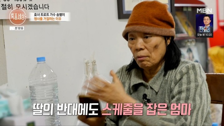 투석이 있는 날만큼은 무대에 서고 싶지 않은 딸과, 딸의 앞길을 막는 존재가 되고 싶지 않은 어머니의 마음이 엇갈리고 있는 것. 송별이는 "투석 날에는 장애인활동지원사 선생님이 오셔도 제가 챙겨야 할 게 많다"며 그날만큼은 스케줄을 잡고 싶지 않다고 털어놨다.
