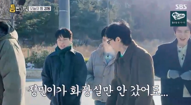 곧이어 네 사람은 강동구 탐방에 나섰는데 날씨가 너무도 추웠다. 설상가상 이들은 눈앞에서 버스까지 놓치고 말았다. 유재석은 "이런 말 그렇지만 정민이가 화장실만 안 갔어도.."라며 눈치를 줬다.