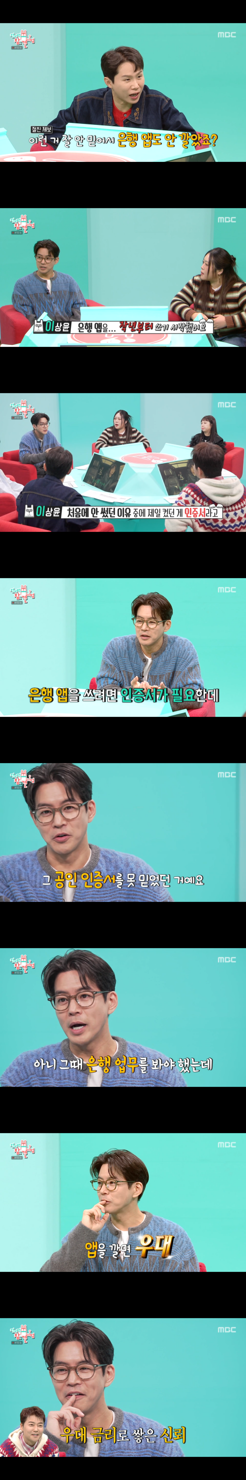 또한 그는 금융 서비스 이용과 관련해서도 조심스러운 태도를 보였다. 이상윤은 “작년이 되어서야 은행 앱을 쓰기 시작했다”며 “인증서도 그렇고, 해킹이나 분실이 걱정돼서 그동안은 컴퓨터로 송금하거나 직접 은행에 갔다”고 설명했다.