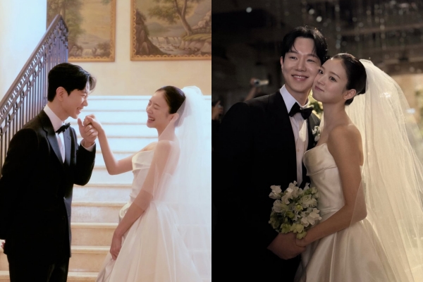 또한 김지영은 본식 화이트 오프숄더 드레스에 이어 2부에서는 핑크빛 플라워 패턴 드레스를 선택해 러블리한 매력을 발산하기도 했다.