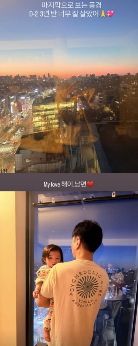 손담비는 딸을 안고 풍경을 바라보는 뒷모습을 공개하며 “해이야 이 집에서 행복했지? 이사 가면 더 행복하게 해줄게”라고 전했다.