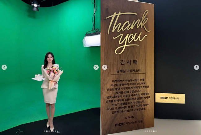 감사패도 공개됐다. 감사패에는 “귀하께서는 방송에서 맡은 바를 차분히 수행하며 어려운 순간에도 흔들림 없이 시청자에게 정확하고 친절한 날씨를 전해주었습니다. 봄의 새벽부터 겨울의 저녁까지, 사계절의 변화를 함께하며 조용하지만 단단한 자세로 방송의 중심을 지켜주셨습니다. 앞으로의 앞날에도 늘 맑고 포근한 날들이 함께하기를 진심으로 기원합니다”라고 적혀 있었다.