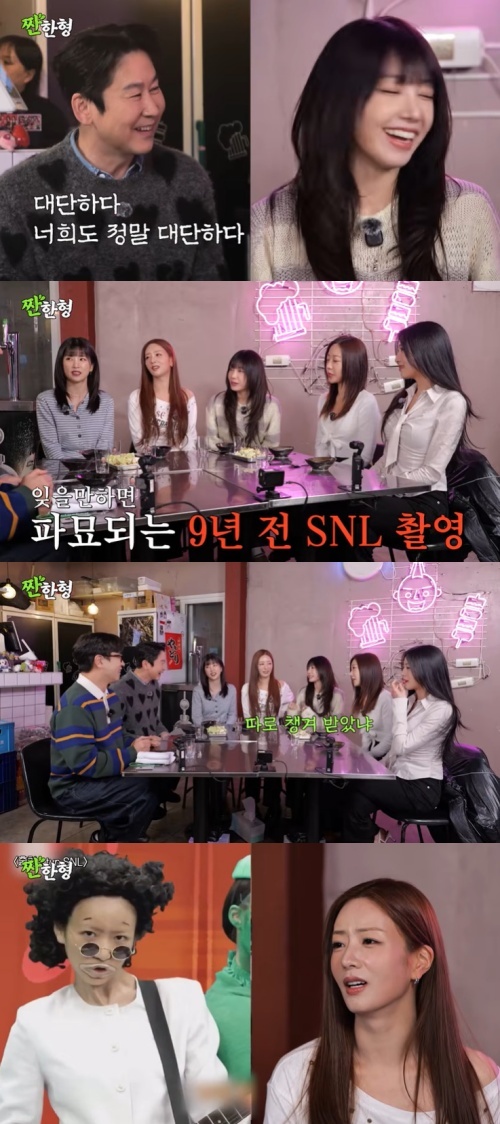 에이핑크 멤버들이 웃었다. 정은지 등이 "'SNL' 분장 때문에 진짜 대단하단 말 많이 들었다"라고 솔직히 고백했다. 특히 "9년 전에 찍었는데, 그게 아직도 회자하고 있다. 얼마 받았냐고 물어보고, 따로 챙겨 받았냐고 하더라"라고 해 폭소를 안겼다.