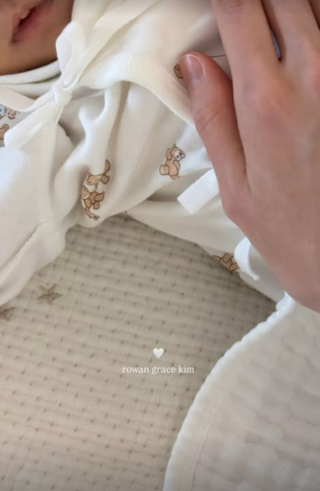스텔라 김은 10일 개인 SNS에 "rowan grace kim"(로완 그레이스 김)이라고 적으며 딸 사진을 공개했다. rowan grace kim이 딸의 이름으로 추측된다.