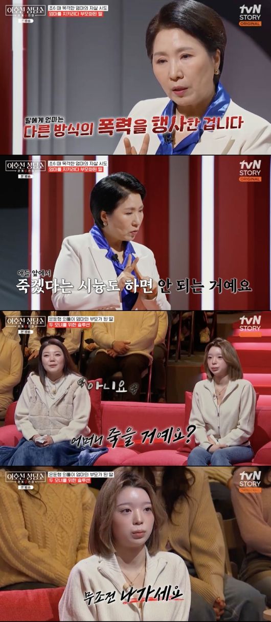 이호선은 “딸에게 엄마는 다른 방식의 폭력을 행사하고 있다. 죽겠다는 시늉도 하면 안 된다. 약을 함부로 끊는데 큰일 날 일이다. 인생이 날아간다. 각자 자유를 얻었으면 좋겠다”라고 말했다.