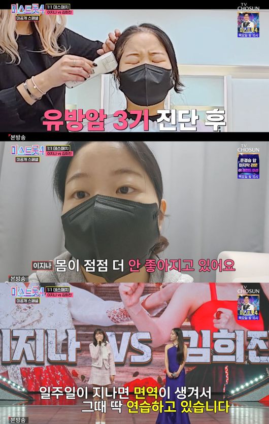 이지나는 유방암 3기 진단을 받고 항암 치료와 오디션을 병행하고 있다고. 이지나는 직접 연습 과정을 영상으로 촬영한 가운데, 그는 "오늘은 항암 3일 차 되는 날이다. 몸이 점점 더 안 좋아지고 있다"라며 연습 영상서 연습을 거듭할 수록 고통을 호소하는 모습을 보이기도 했다.