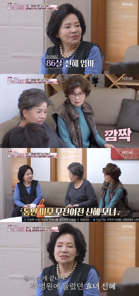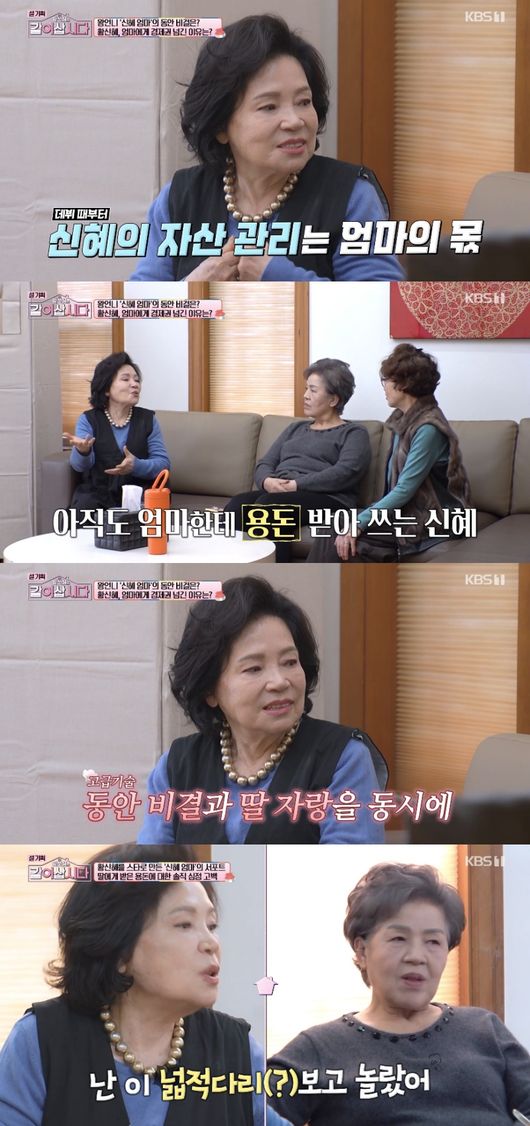 11일 방송된 KBS 1TV ‘황신혜의 같이 삽시다’에서는 황신혜 어머니의 동안 비주얼에 장윤정, 정가은 어머니가 놀라는 모습이 그려졌다.