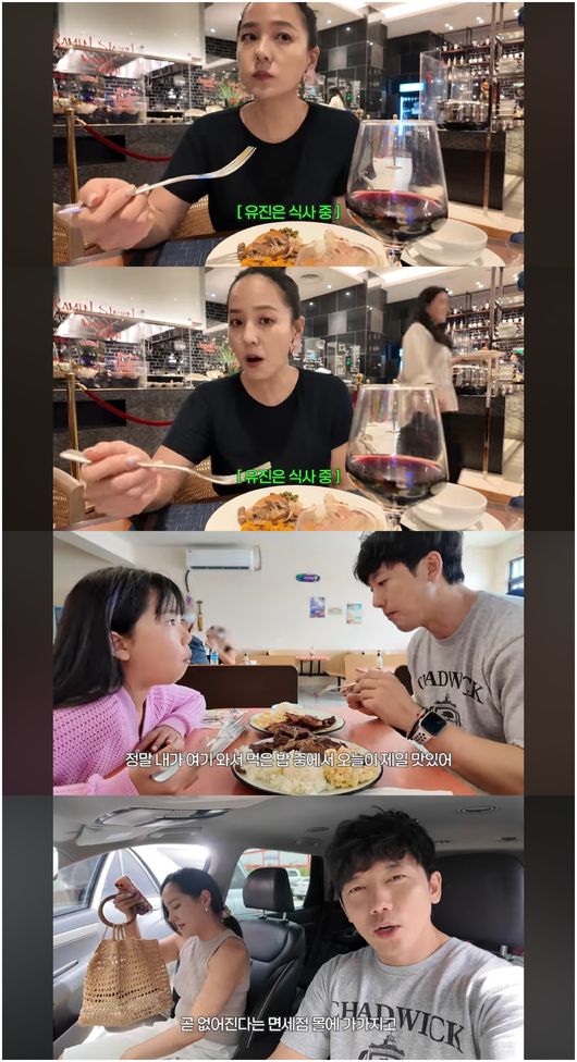 이날 유진과 기태영은 괌 여행을 갔다. 출발 전 D항공 라운지를 찾은 유진은 “오랜만에 괌에 간다. 지금 대한항공 라운지에 왔는데 라운지가 싹 리모델링해서 정말 좋다. 고급 레스토랑처럼 해놨다. 정말 메뉴가 다양하다. 저는 코다리찜이랑 잔치국수를 먹었다. 라운지가 정말 고급스럽다”라며 “라운지 내 기둥이 미디어 아트로 되어 있다”라면서 여유로움을 즐겼다.