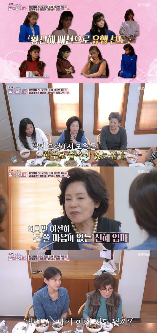 당시 황신혜는 의상 협찬이 들어오는 것은 물론, ‘황신혜 패션’으로 유행을 선도했다고. 어머니는 자신의 손으로 돌봐준 적 없다며 미안함을 드러냈고, 황신혜는 자신이 드리는 용돈을 거의 쓰지 않다며 속상해했다.