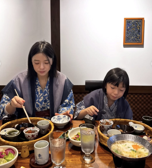 공개된 사진에는 일본 규슈 유후인에서 온천 여행을 즐기는 세 가족의 모습이 담겼다. 유카타 차림으로 나란히 서서 환한 미소를 짓는 모습부터, 식사 시간을 함께 보내는 다정한 장면까지 화목한 분위기가 고스란히 전해진다.