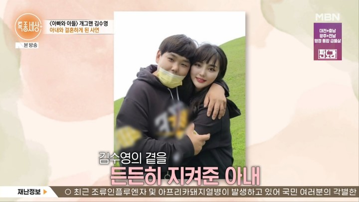 그가 더 열심히 일하려는 가장 큰 이유는 아내였다. 지금의 아내는 그가 가장 힘든 시기에 만난 사람이다. 아내는 당시에도 김수영의 책임감을 믿었다고. 김수영은 “아내가 나에게 주는 것의 몇 배를 돌려주고 싶어서 더 열심히 뛰어야겠다는 생각이 든다”고 애정을 드러냈다.
