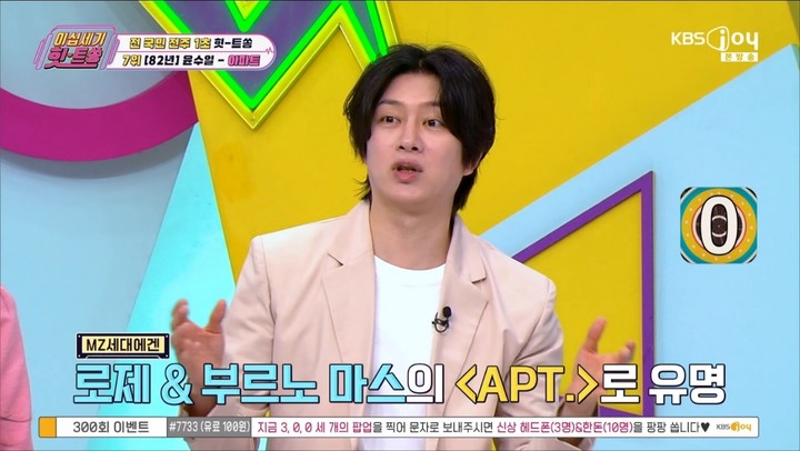 또 김희철은 “요즘은 로제와 부르노 마스가 부른 ‘아파트’가 유명해지면서 윤수일 형님의 ‘아파트’를 ‘재건축 아파트’라고 부른다더라”고 덧붙여 또 한 번 웃음을 유발했다.