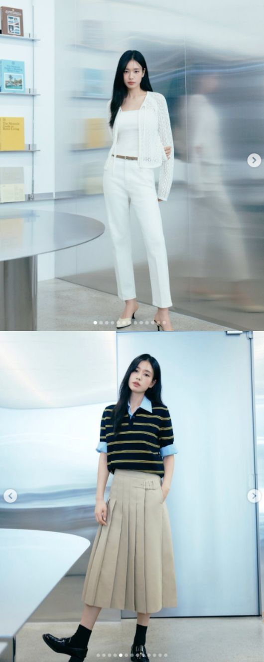 공개된 사진 속 안은진은 화이트 톤의 니트 가디건과 슬랙스를 매치한 올 화이트 스타일링으로 청초하면서도 세련된 매력을 드러냈다. 군더더기 없는 깔끔한 실루엣과 자연스럽게 늘어뜨린 긴 생머리가 어우러지며 단아한 분위기를 완성했다.