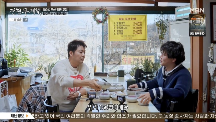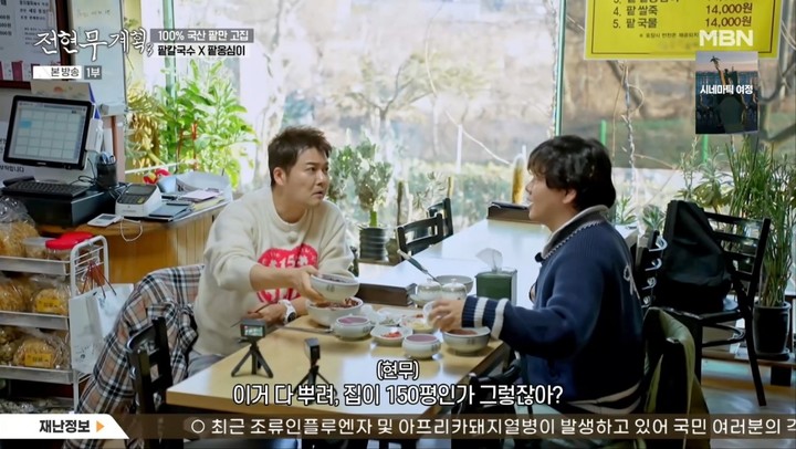 이날 전현무는 첫 번째 맛집으로 팥칼국수와 팥옹심이가 메인인 식당으로 곽튜브를 안내하면서 "청계산에 오면 다들 들르는 집"이라고 소개했다.