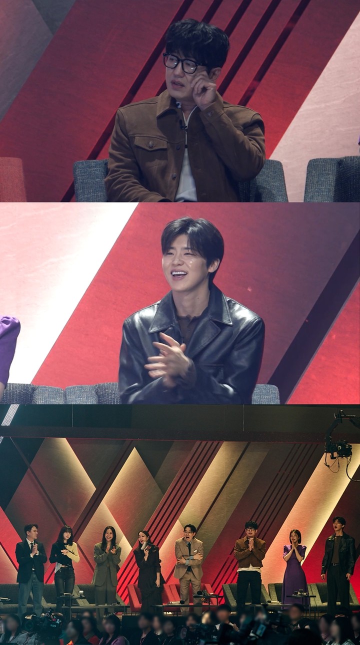 배우 허성태 역시 카리스마 넘치는 이미지와는 180도 다른 ‘F 감성’ 리액션으로 현장을 달궜다. 그는 평소 2시간 반 이상 화장실을 참지 못하는 체질임에도 불구하고, 무대에 홀려 4시간 30분째 자리를 뜨지 못하는 진풍경을 연출했다. 허성태는 “오늘 계 탔다. 출연료를 받은 게 미안할 정도”라며 생리 현상마저 잊게 만든 무대의 몰입감에 감탄을 금치 못했다.