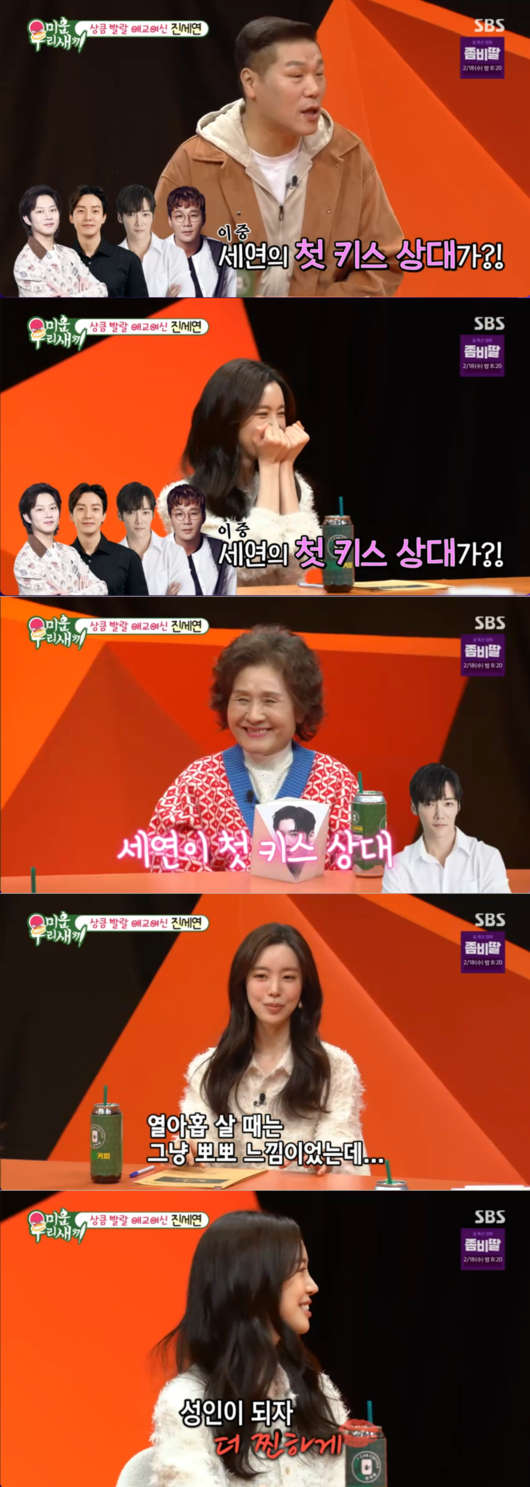 특히 모두를 놀라게 한 것은 진세연의 '첫 키스 상대'에 대한 폭탄 고백이었다. 출연진 중 한 명의 아들이 첫 키스 상대였다는 말에 스튜디오가 술렁였고, 진세연은 그 주인공이 "진혁 오빠였다"라고 밝혀 눈길을 끌었다.