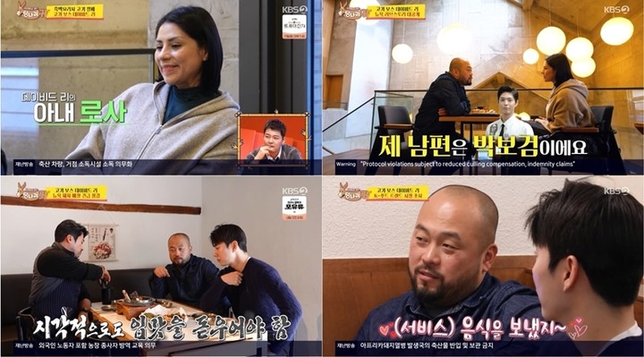 한편, 카리스마 넘치는 주방의 지배자 ‘데이비드 리’는 아내 앞에서의 반전 매력으로 눈길을 끌었다. 결혼 19년 차임에도 아내 로사에게 “예쁘니까 서비스를 보냈다”며 요리 플러팅 사연을 공개하는가 하면, 한국어가 서툰 아내에게 “내 남편은 박보검이라고 말하라”는 엉뚱한 교육법으로 폭소를 유발했다.