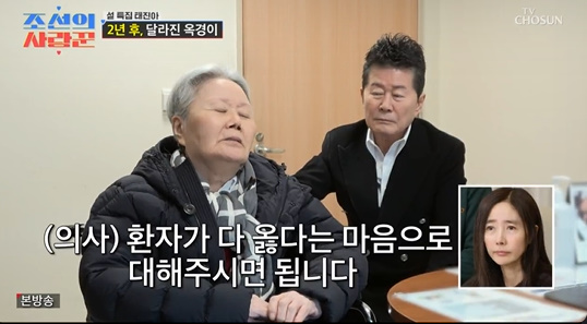 16일 방송된 TV조선 ‘조선의 사랑꾼’에서는 2년 만에 공개된 옥경이 씨의 모습이 그려졌다. 휠체어를 타고 등장한 그는 이전보다 눈에 띄게 야윈 모습이었고, 머리카락도 백발로 변해 있어 출연진들의 걱정을 샀다. “2년 만에 몸이 많이 쇠약해지셨다”는 말이 나올 정도로 건강이 악화된 모습이었다.