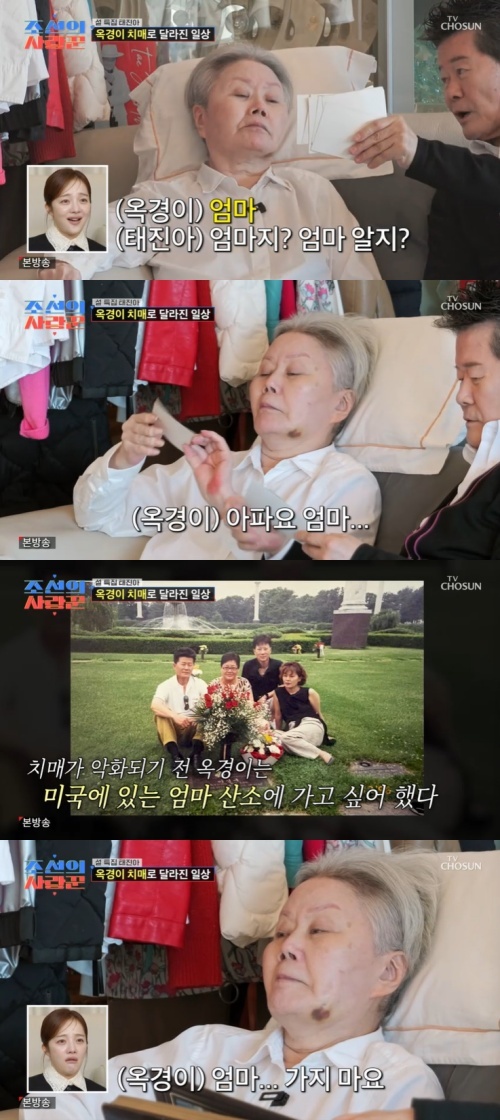 앞서 태진아 아내는 치매가 악화하기 전 미국에 있는 엄마 산소에 가고 싶어 했다고 전해졌다. 옥경이가 "엄마 가지 마요"라고 해 안타까움을 더했다.