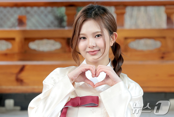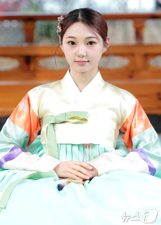 그룹 키라스 멤버 카일리가 9일 서울 종로구 뉴스1 인근에서 열린 인터뷰에 앞서 한복을 곱게 차려입고 인사를 하고 있다. 2026.2.10 © 뉴스1 권현진 기자