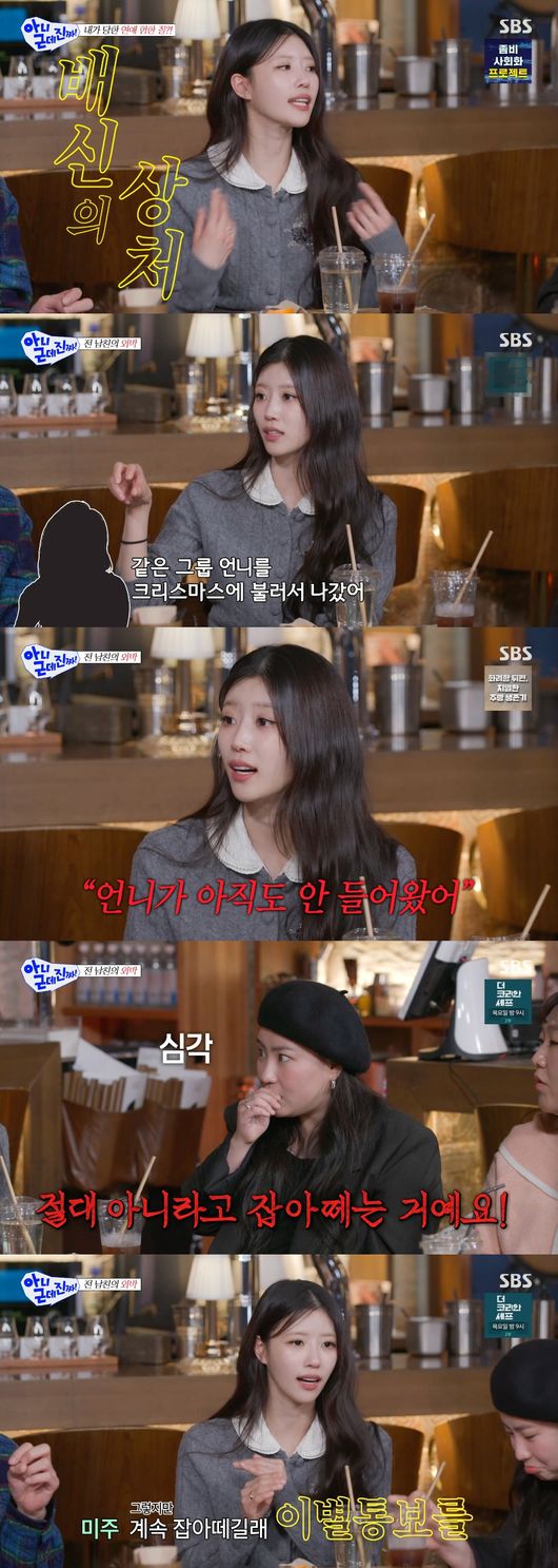 하지만 다음 날 친구로부터 충격적인 제보를 받게 된다. “다음날 친구한테 전화가 왔다. 이 사람 아냐, 어떤 사람이냐고 물어봐서 남자친구라고 했더니 그 사람이 자기와 같은 그룹 언니를 크리스마스에 불러서 나갔다고 하더라. 근데 언니가 아직도 안 들어왔다고 했다”고 고백했다.