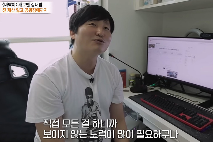 돈을 잃고 정신을 차리지 못했다는 그는 "그렇게 무명 생활하다가 겨우 빛을 보고 힘들게 모은 돈을 잃은 거다. 망연자실하고 술에 빠져 살았다"며 일용직으로 생활을 이어나갔다고 털어놨다. 김대범은 "심지어 호객 행위까지 했다"며 "지금은 인터넷 방송을 하고 있다. 이걸 하면서 편집 학원도 다니고 보이지 않는 노력이 많이 필요하다는 걸 알게 되더라"라고 근황을 전했다.
