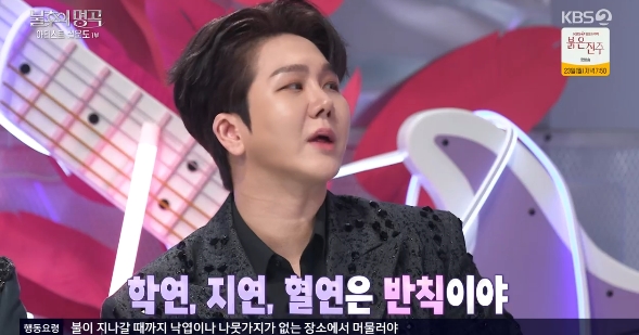 그러자 김수찬은 "학연, 지연, 혈연으로 가면 안 된다. 낙하산 아닌가요?"라고 의문을 제기했다. 이승현은 이를 극구 부인하며 "노래 한 번 봐달라고 말씀드렸다가 죽을 뻔했다"며 설운도가 칼같이 엄격한 아버지임을 증언했다.