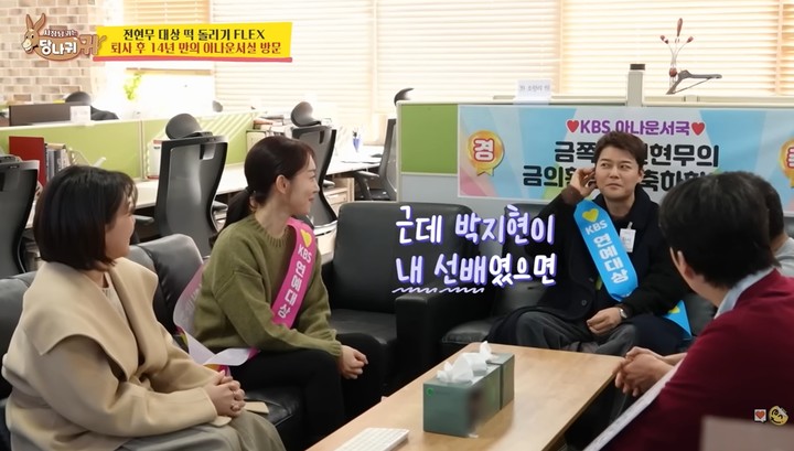 이날 방송에서 전현무는 평소와 달리 긴장된 표정으로 KBS를 방문해 관심을 모았다. 지난해 '사당귀'로 2025 KBS 연예대상을 수상한 전현무는 자신의 친정인 KBS 식구들에게 감사함을 전하기 위해 양손 가득 떡 꾸러미를 안고 퇴사 후 14년만에 아나운서실을 찾았다.