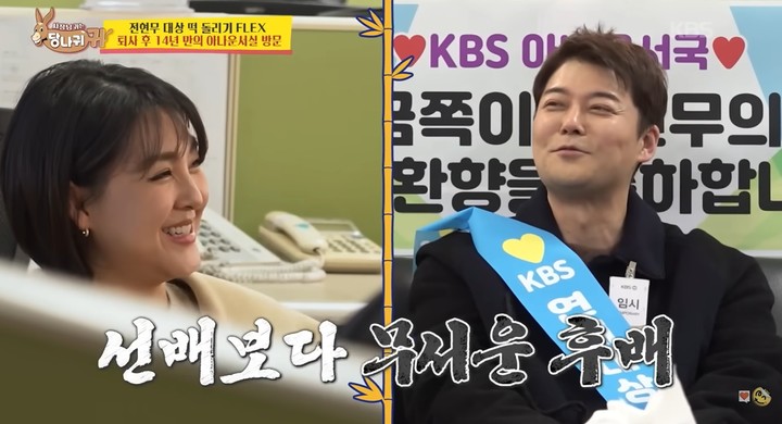 (MHN 김유표 기자) 방송인 전현무가 퇴사 후 14년 만에 친정 'KBS 아나운서국'을 찾아 웃음과 감동을 선사했다.