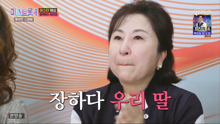 24일 방송된 ‘미스트롯4 올하트 스페셜’에서는 가수 허찬미와 그의 어머니 김금희가 나란히 올하트를 받으며 본선에 진출했던 순간이 재조명됐다.