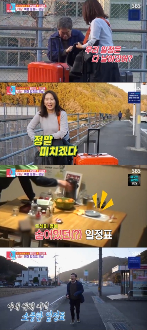 이에 윤유선이 "우리 일정 다 날아갔어?"라며 웃었다. 이성호가 "메뉴판 옆에 놓고 왔나? 어떡하지? 내가 다시 갔다 올게"라고 했다. 윤유선은 "어떻게 다시 갔다 와? 피곤하니까 다시 뽑아"라고 제안했다. 그런데도 이성호가 "이거 없으면 아무것도 못 해"라며 휴대 전화에도 저장해 두지 않았다고 고백했다.