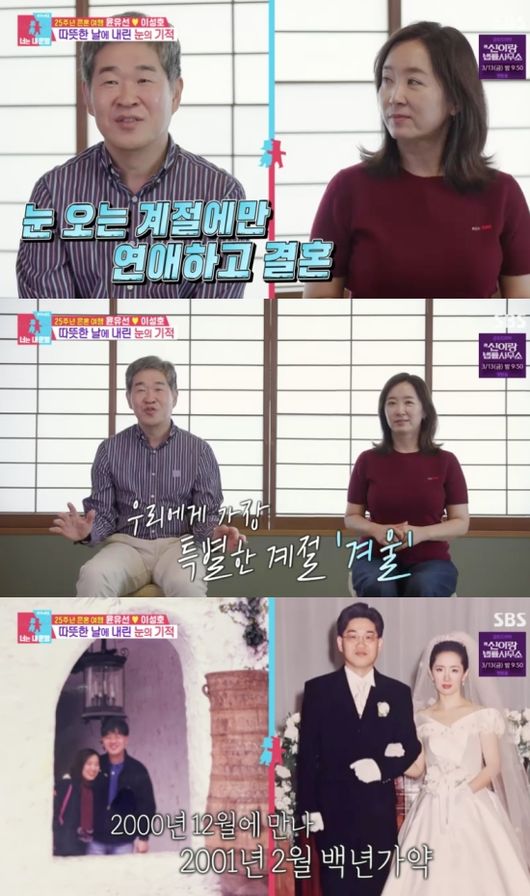 다음 날 이들 부부는 설산 데이트에 나섰다. 이성호는 “눈 오는 계절에만 연애를 하고 결혼을 했다. 서로 이야기할 때 눈 이야기를 많이 했다”라고 말하며 윤유선을 위해 설산 데이트를 준비했다고 밝혔다.