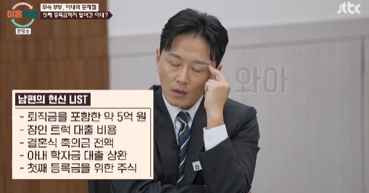 남편은 아내가 많은 돈을 잃은 것을 알면서도 아들의 등록금으로 남겨뒀던 마지막 주식마저 아내에게 줬고, 아내는 이를 사업 자금과 빚 청산으로 활용해 모두 탕진했다. 심지어 아내는 자신도 학자금 대출을 받았다며, 남편 생각과는 달리 아들의 등록금을 꼭 해줄 필요가 없다고 말해 패널들을 충격에 빠뜨렸다.