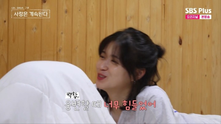 이후 백합은 여자방에 가서도 솔직한 마음을 공개했다. 그는 여자 출연자들이 함께 있는 자리에서 "아까 웅변할 때 너무 힘들었다"면서 "상철님 발언을 듣는데, 대학교 노래자랑에서 내 이름 넣고 노래 부르는 느낌이었다. 어찌할 바를 모르겠었다. 내가 그런 걸 잘 못 견딘다"고 설명했다.