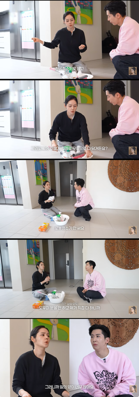 특히 로봇청소기를 쓰냐는 질문에 한가인은 “로봇청소기 안 써요”라고 단호하게 답해 브라이언을 경악게 했다. 한가인은 “도우미 분을 안 하고 제가 직접 다 하니까 너무 일의 양이...”라며 독박 살림의 고충을 토로했다.