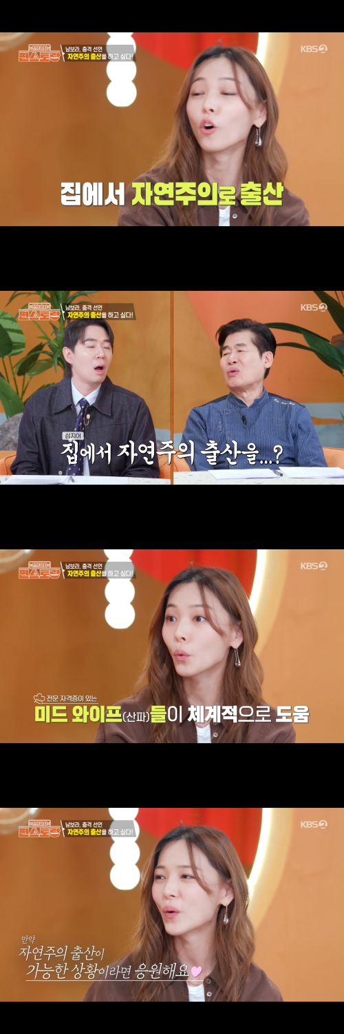 선예는 “캐나다에서는 흔한 일이다. 미드와이프라는 분들이 병원과 협의해 체계적으로 도움을 준다”며 “가장 중요한 건 산모와 아이의 건강이니까 그게 가능한 선이라면 너무 응원해주고 싶다”고 말했다.