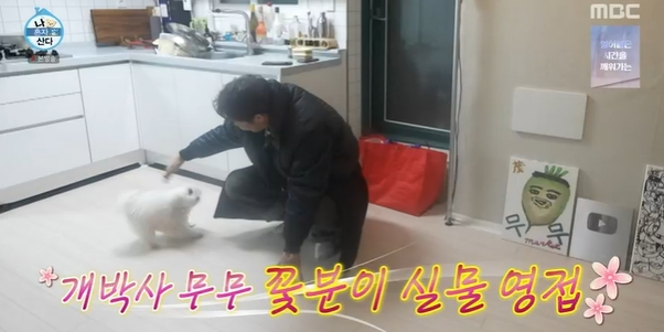 식사 후 전현무는 민들레 홀씨처럼 털이 자란 꽃분이를 꼭 끌어안고 있었다. 꽃분이도 자기를 예뻐하는 걸 안다는 듯 얌전히 안겨 있는 모습이었다. 전현무는 "아이고 예쁘게 생겼네? 주인하고 달리"라고 말해 웃음을 자아냈다.