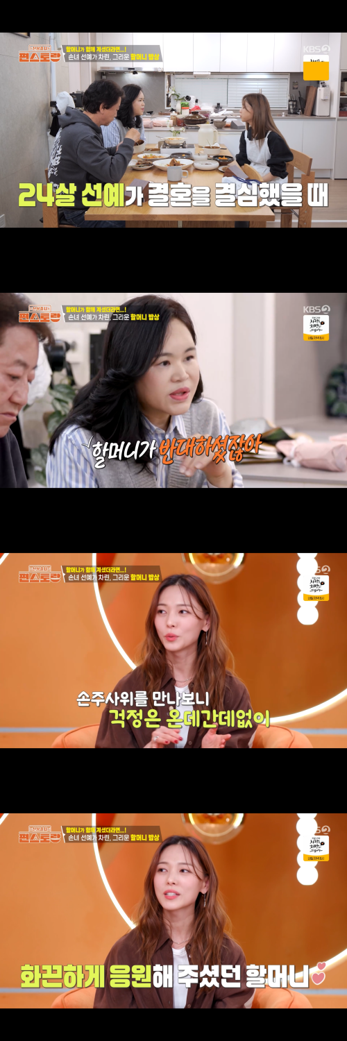 [OSEN=배송문 기자] 원더걸스 출신 선예가 결혼 당시 할머니의 반대가 있었다고 밝혔다.