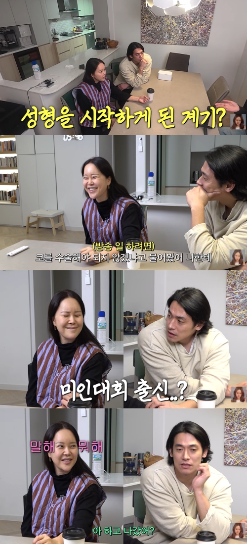 남편 정석원은 "진짜 궁금한 게 있다. 자기 무슨 '미스춘향' 이런 대회 나갔는데 그때 성형 안 하고 나갔냐? 3등 했던 그 대회"라고 물었다. 백지영은 "성형했다. 그리고 춘향 아니다. 나 미스춘향 나간 적 없다"고 답했다.