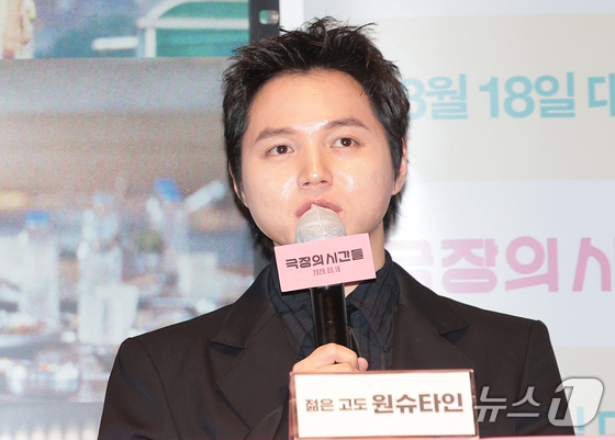 가수 겸 배우 원슈타인이 3일 서울 종로구 씨네큐브에서 열린 영화 ‘극장의 시간들’ 언론시사회 및 기자간담회에 참석해 인사말을 하고 있다. '극장의 시간들'은 관객, 감독, 배우 등 다양한 인물들을 주인공으로 영화적 재미는 물론 극장이라는 장소가 지닌 예술적·사회적 의미를 조명한다. 특히 대한민국 대표 예술영화관 씨네큐브가 개관 25주년을 맞아 제작한 작품으로 극장과 영화의 미래에 대해 새로운 도전과 희망을 제시해 더욱 높은 관심을 끌고 있다. 2026.3.3 © 뉴스1 권현진 기자