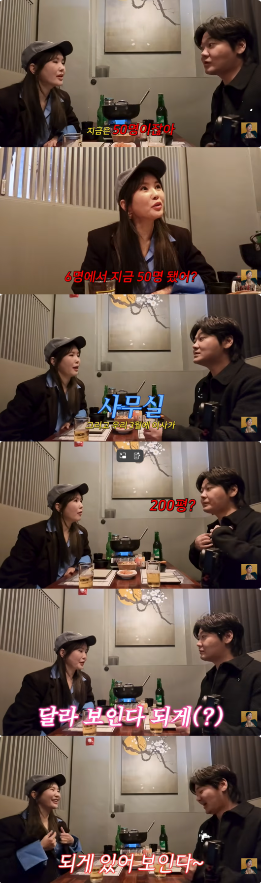 PD는 "나도 고맙다. 선배 때문에 우리 직원 6명에서 시작했는데 지금은 50명이다"라고 밝힌 것. 이어 "오는 3월에 200평 규모의 새 사옥으로 이사한다"는 소식을 덧붙였다.