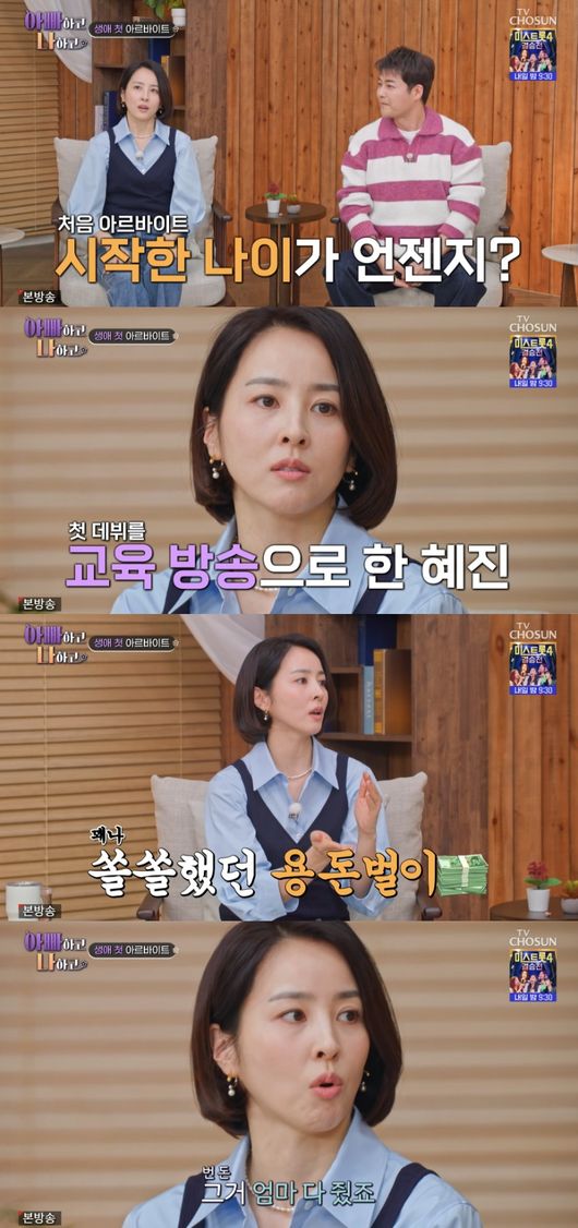 이날 한혜진은 “첫 알바 몇 살 때 시작했냐”는 질문에 “아르바이트라기 보다는 제가 첫 데뷔를 EBS 교육 방송으로 시작했다. 학교 선생님이랑 교육 프로그램을 진행했다”라고 밝혔다.