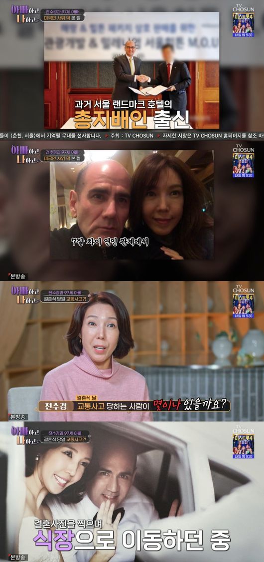 이날 전수경은 과거 오랫동안 서울 H 호텔 총지배인을 맡았던 남편과의 첫만남을 떠올렸다. 그는 "2014도 9월에 저희 남편하고 결혼했다. 저희가 만난 건 제가 갑상선암 수술을 받고 슬프게 지내던 때에 마침 만나게 됐다"라며 7살 차이 연인관계에서 부부로 발전됐다고 말했다.