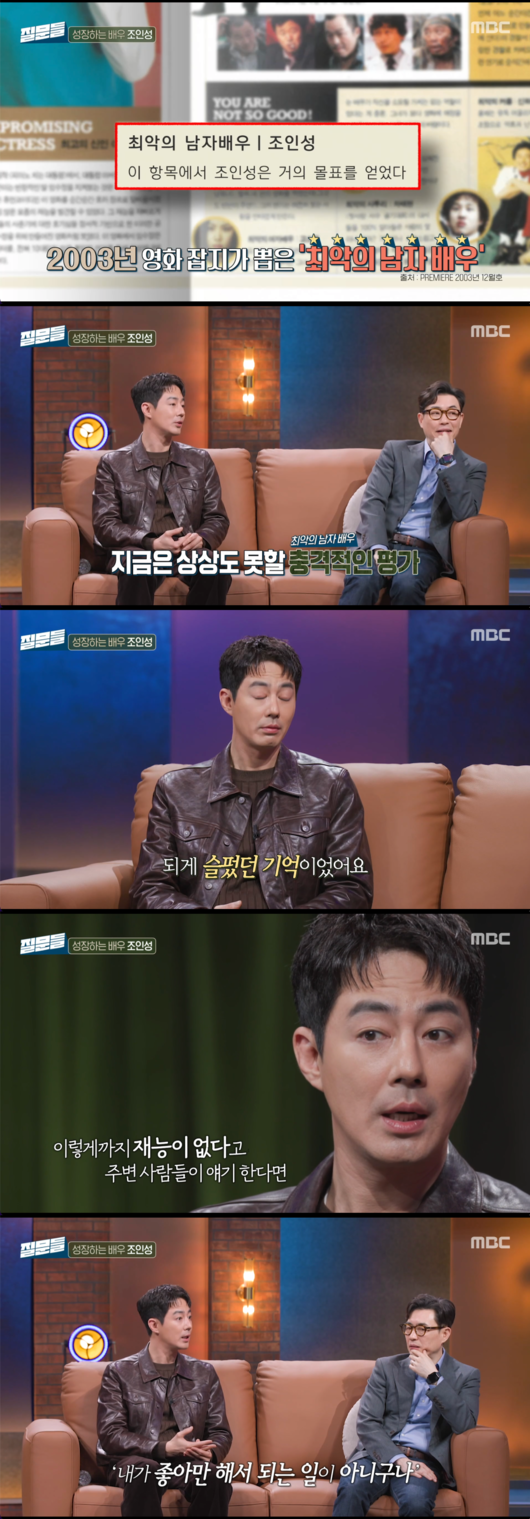 조인성은 당시 심경에 대해 “되게 슬펐던 기억이다. ‘그만둬야 하나?’ 이렇게까지 재능이 없다고 주변 사람들이 얘기를 한다면 내가 좋아만 해서 되는 일이 아니구나라고 생각했다”며 솔직하게 고백했다.