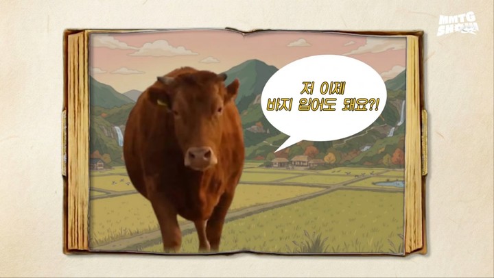 이야기를 듣던 재재는 곧바로 질문을 던졌다. 그는 "그럼 소는 바지를 어떻게 입느냐. 두 발이냐, 네 발이냐"고 물었다.