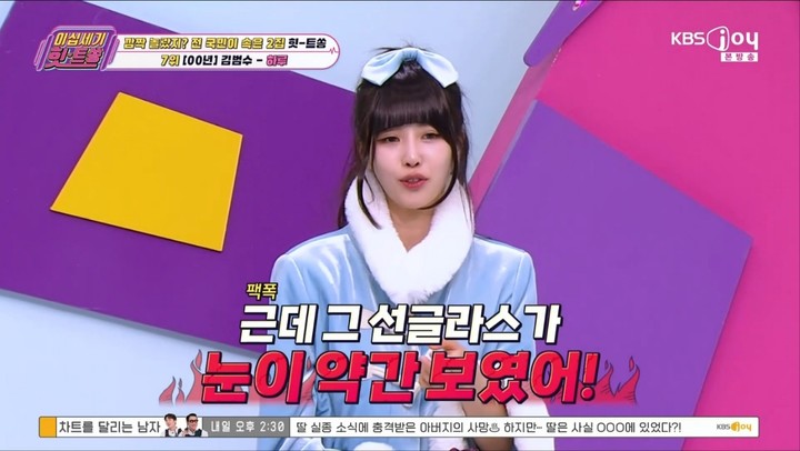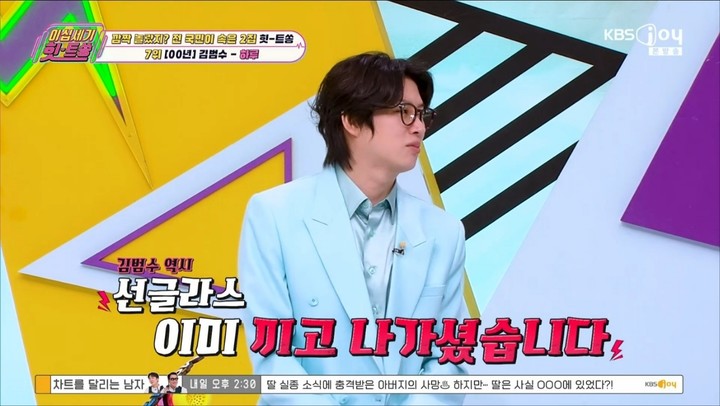 김희철은 "그만해! 범수 형이 사람 얼마나 좋은데"라며 미주를 말렸고, 미주는 "그게 아니고 그냥 보였다고 얘기한 것"이라고 해명했다.