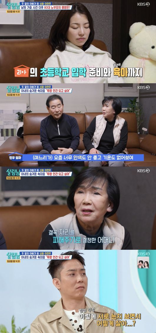 7일 방송된 KBS 2TV ‘살림하는 남자들 시즌2’(이하 ‘살림남’)에서는 두 아이 육아로 지친 이민우 아내가 시어머니 눈치까지 보는 모습이 그려졌다.