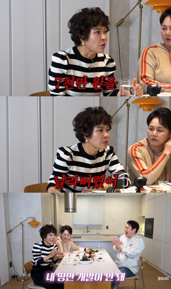 이어 조혜련은 "전화하니 날라버렸다"라며 "신기한 게 싹 다 개발되는데 내 땅만 개발이 안 돼!"라고 외쳐 웃음을 안겼다. 조혜련의 고백에 이경실 역시 목욕탕에서 알게 된 지인에게 땅 투자 사기를 당한 경험이 있다고 공감했다.